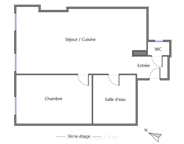 Il se compose d'un hall d'entrée, d'un séjour lumineux avec cuisine ouverte de plus de 24 m2, d'une chambre confortable, d'une salle d'eau moderne et d'un WC indépendant.