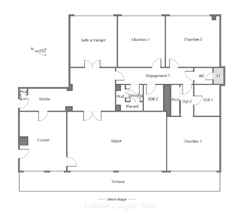 Il se compose d'un vaste hall d'entrée desservant un beau séjour de 30.67 m2 et d'une grande cuisine de 14.27m2, ouvrant sur une agréable terrasse de 20.25 m2 exposée Ouest.