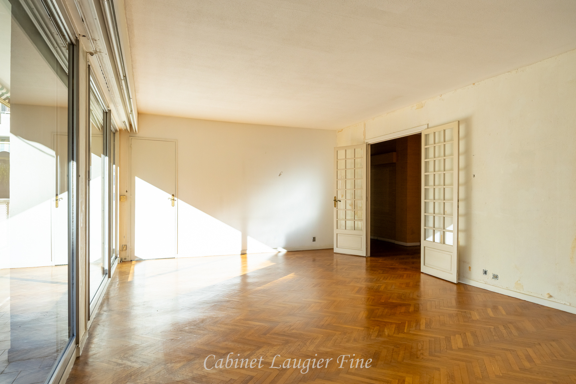 Cet appartement de caractère avec ses beaux volumes et son parquet en chevrons est à restaurer pour lui rendre toute sa noblesse.