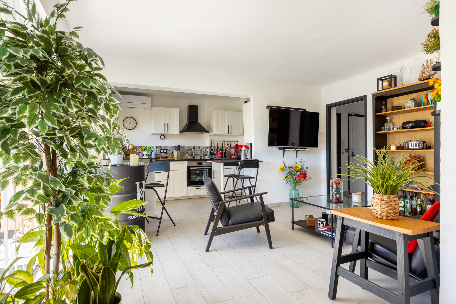 Côté confort : double vitrage, climatisation réversible et volet électrique dans la pièce de vie, store banne électrique sur la terrasse, nombreux rangements...
