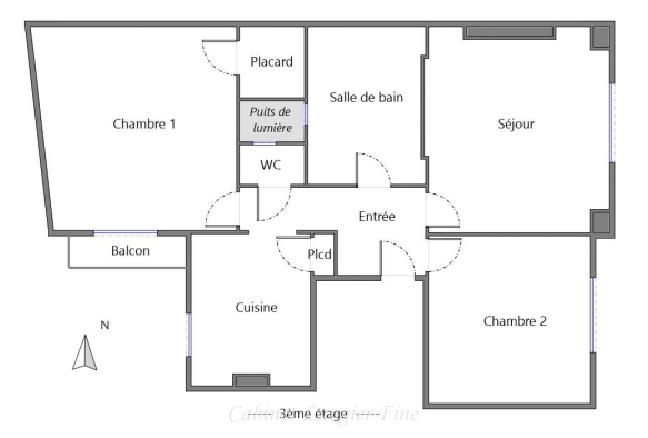 L'appartement s'ouvre sur un hall d'entrée distribuant un séjour lumineux donnant accès à un balcon, ainsi qu'à une cuisine séparée et confortable. L'espace nuit comprend deux grandes chambres, une salle de bains ainsi qu'un WC indépendant.