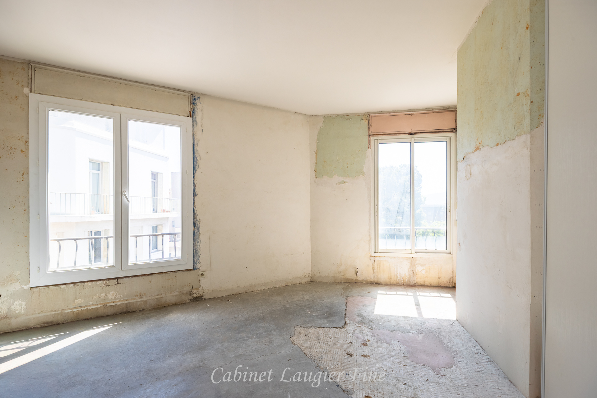 Ce bien rare séduit immédiatement par sa luminosité exceptionnelle, son calme absolu et surtout sa vue dégagée sur Notre-Dame de la Garde et le Palais Longchamp. L'appartement s'ouvre sur un hall d'entrée menant à un vaste séjour de plus de 26 m2, baigné de lumière grâce à de larges ouvertures, et donnant accès à un balcon de 9 m2 où vous pourrez savourer chaque jour un panorama unique sur la ville. La cuisine séparée, entièrement équipée et vendue avec l'appartement, complète harmonieusement l'espace de vie. Le coin nuit se compose de deux très grandes chambres (15,87 m2 et 19,49 m2), d'une salle d'eau et d'un WC indépendant.